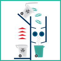 Os containeres terão suas tampas fechadas e serão encaminhados para a área de armazenamento de R.S.S. aguardando o momento do tratamento. Como eles são dotados de tampa, minimizam e evitam a presença de moscas e odor dos R.S.S.
